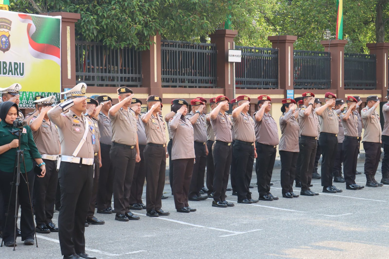 Kapolresta Pekanbaru, Kombes Pol Jeki Rahmat Mustika, S.I.K., bertindak sebagai Inspektur Upacara. Bertindak sebagai Perwira Upacara, Kabag SDM Polresta Pekanbaru Kompol Suratman, S.H., M.H., dan Komandan Upacara, Kasubnit 2 Unitregident Satlantas Polresta Pekanbaru, Ipda Ari Tonika, S.H.