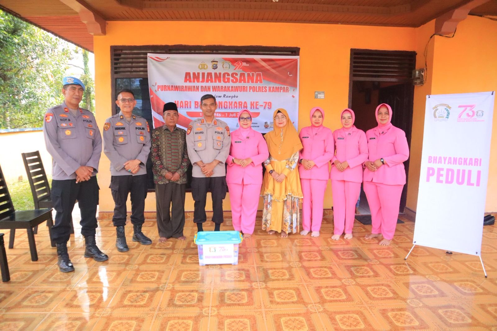 Bangkinang Kota (bersinarnews.com)- Menjelang peringatan Hari Bhayangkara ke-79 tahun 2025, Jajaran Polres Kampar menggelar kegiatan Bakti Sosial dengan melakukan Anjangsana dan silaturahmi terhadap Purnawirawan dan warakawuri.