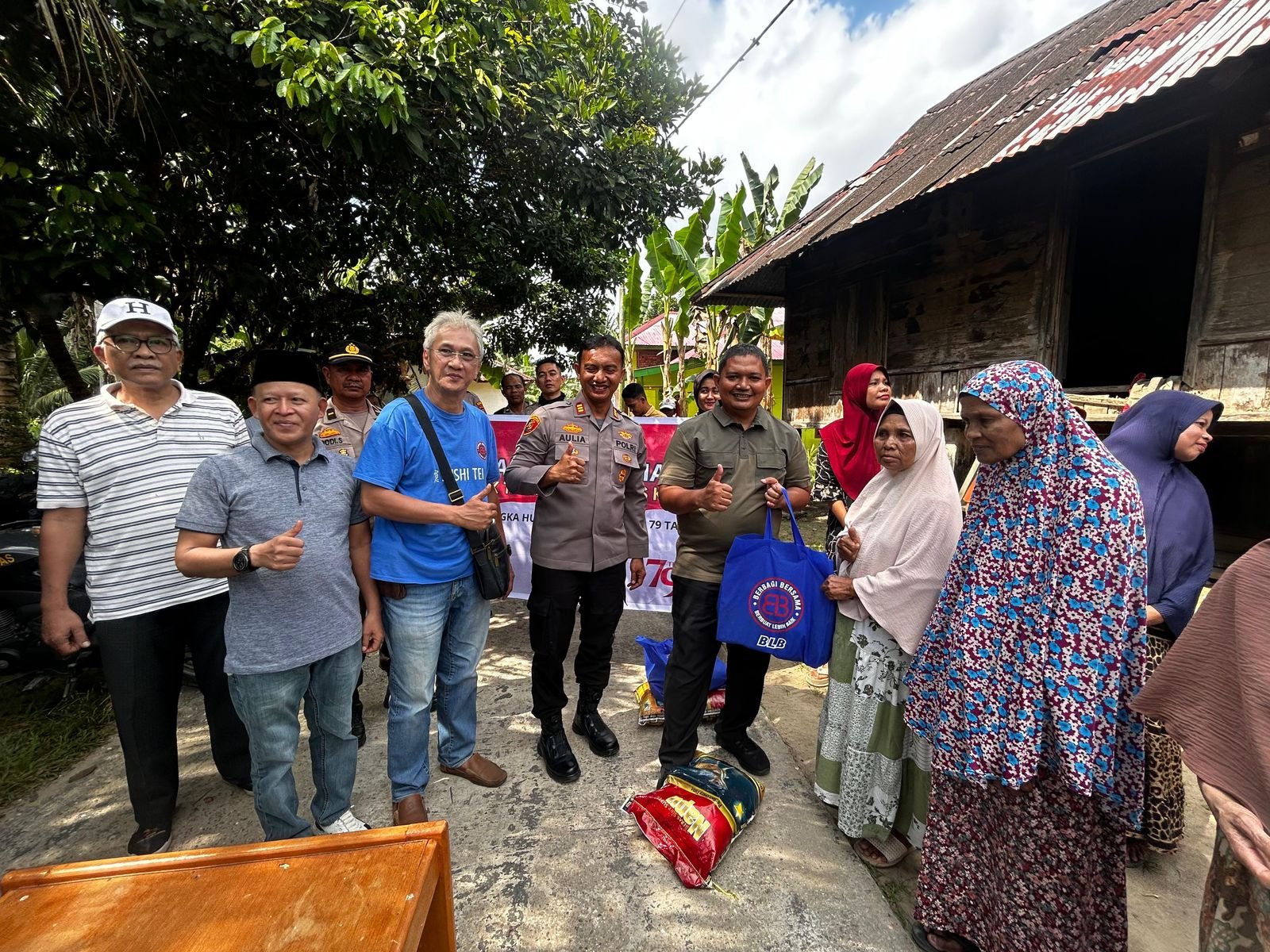 Tambang (bersinarnews.com)- Dalam rangka menyambut Hari Ulang Tahun (HUT) Bhayangkara ke-79, Kapolsek Tambang AKP Aulia Rahman bersama Camat Kampa Rahmat Fajri melaksanakan kegiatan sosial dengan membagikan paket sembako kepada warga kurang mampu di Desa Pulau Rambai, Kecamatan Kampa, Kabupaten Kampar, Sabtu (14/6/2025) sekira pukul 11.00 Wib.