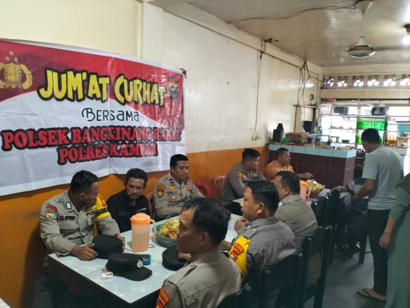 Kuok (bersinarnews.com)- Polsek Bangkinang Barat melaksanakan kegiatan Jumat Curhat di Desa Kuok, Kecamatan Kuok, Kabupaten Kampar, pada Jumat (23/5/2025). Kegiatan yang berlangsung pukul 08.30 WIB hingga 09.00 WIB ini dihadiri oleh Kapolsek Bangkinang Barat, Iptu Rian One Kanit Binmas, Aiptu Khairunnas, Kanit Intel, Aipda Ulya Arifin dan Aipda Dedi Saputra; Bripka E.R. Hutasoit; para Bhabinkamtibmas (Bripka Zul Efendi dan Bripka Erwin); serta warga Desa Kuok.