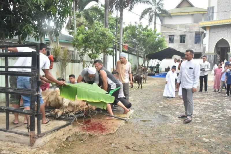 Usai pelaksanaan salat, acara dilanjutkan dengan pemotongan hewan kurban yang diselenggarakan di halaman masjid. Korem 031/WB tahun ini menyerahkan sejumlah 27 hewan kurban yang terdiri dari 15 ekor sapi dan 12 ekor kambing, yang dagingnya akan dibagikan kepada masyarakat yang membutuhkan, khususnya di sekitar wilayah masjid dan lingkungan Korem.
