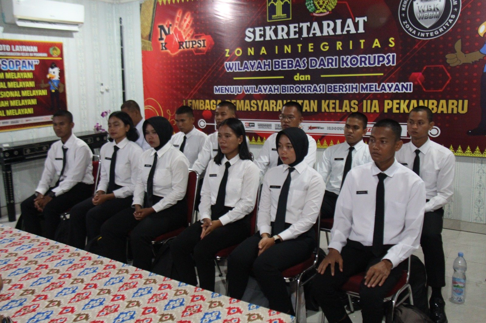 Di tempat yang berbeda Kepala Lapas Pekanbaru, Erwin Fransiskus Simangunsong, mengatakan pengenalan lingkungan kerja merupakan kesempatan yang sangat baik dan penting guna membekali dan memperkuat kembali nilai-nilai integritas, kedisiplinan, loyalitas, dan etika kerja kepada insan muda Kemenimipas.