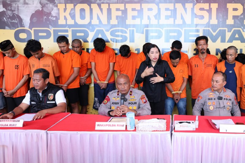 Hal itu ditegaskan Wakapolda Riau Brigjen Pol Jossy Kusumo saat pimpin konferensi pers Operasi Premanisme Lancang Kuning 2025, Kamis (15/5/2025), yang dihadiri oleh, Dir Reskrimum, Dir Resnarkoba, Kabid Humas dan Kabid Propam Polda Riau.