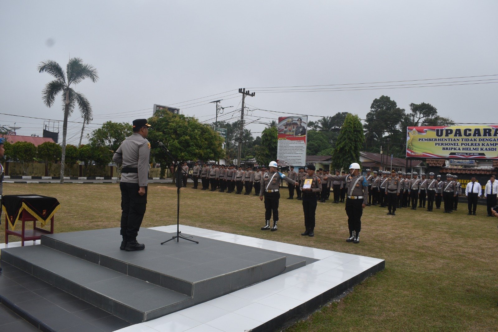 Dalam upacara ini dibacakan Keputusan Kapolda Riau tentang Pemberhentian Tidak Dengan Hormat (PTDH) terhadap personel Polri di Lingkungan Polda Riau, pada tahun 2025 adalah Bripka Helmi Kasdi anggota Banit Samapta Polsek Bangkinang Kota Polres Kampar.