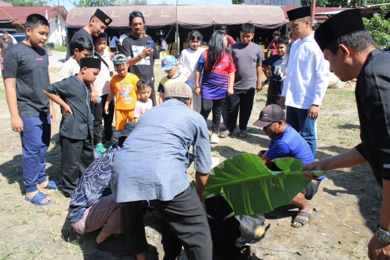 Kegiatan dimulai pada pukul 09.30 WIB dan berlangsung dalam suasana khidmat dan penuh kebersamaan. Kegiatan ini turut dihadiri oleh Wakapolresta Pekanbaru AKBP Ronald Sumaja, S.I.K. beserta istri yang mewakili Kapolresta Pekanbaru, para Pejabat Utama (PJU) Polresta, Kapolsek jajaran, pengurus Bhayangkari, tokoh masyarakat seperti Ketua RW 08 AKP Sumaryadi, Ketua RT 05 Aiptu Rudi Gunawan, panitia pelaksana kurban Musholla Al-Falah, serta warga Asrama Polresta Pekanbaru.