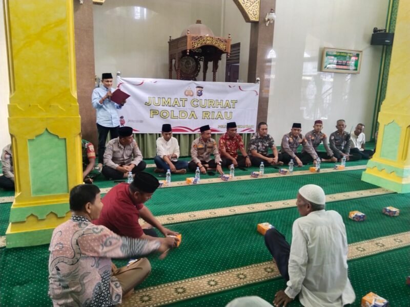 Pekanbaru (bersinarnews.com)- Dalam upaya mendekatkan diri dengan masyarakat serta mendengarkan secara langsung aspirasi warga, Polsek Pekanbaru Kota menggelar kegiatan Jum’at Curhat bertempat di Masjid Darul Amal, Jalan Hang Tuah, Kelurahan Sumahilang, Kecamatan Pekanbaru Kota, Jumat (18/07).