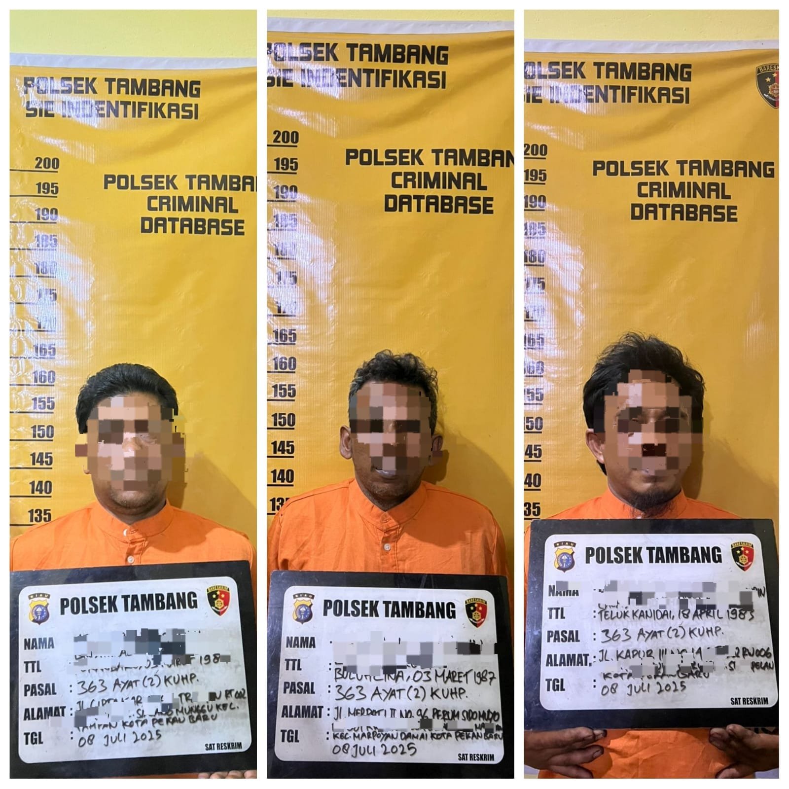 Kampar (bersinarnews.com)- Kejahatan pencurian atap seng yang menimpa beberapa rumah di Perumahan Mutiara Aishafa, Desa Kualu, Kecamatan Tambang, Kabupaten Kampar, akhirnya terungkap. Selasa (8/7/2025), Polsek Tambang berhasil mengamankan tiga tersangka yang terlibat dalam aksi pencurian tersebut. Keberhasilan ini tidak lepas dari kewaspadaan warga dan kerja keras pihak Kepolisian.