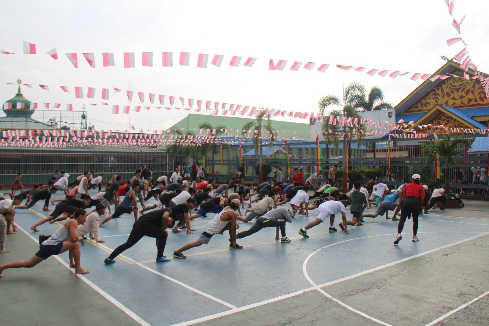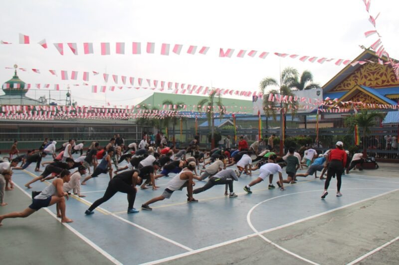 Pekanbaru (bersinarnews.com)- Lembaga Pemasyarakatan (Lapas) Kelas IIA Pekanbaru kembali melaksanakan kegiatan senam pagi rutin yang diikuti oleh seluruh Warga Binaan Pemasyarakatan (WBP), Selasa (19/08). Kegiatan ini berlangsung di lapangan Lapas dan dipandu langsung oleh instruktur senam profesional dari luar, sehingga menciptakan suasana penuh semangat dan keceriaan.